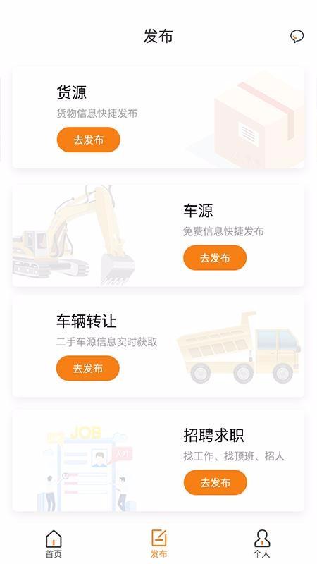 3、设置多种我的发布管理图标,其中有车源、货源以及车辆转让多种发布管理图标;